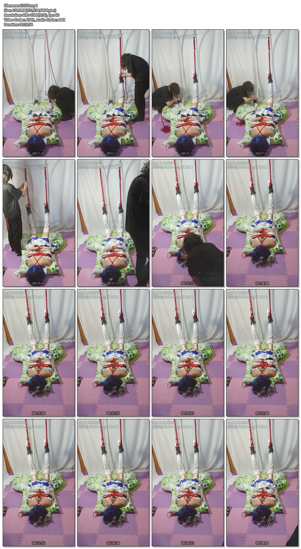 【时生】崩坏三战败后的希儿,彼岸双生白希cos!!!日式捆绑上半身,吊起双腿,郊狼电击!!!无法挣脱的调教惩罚!!!