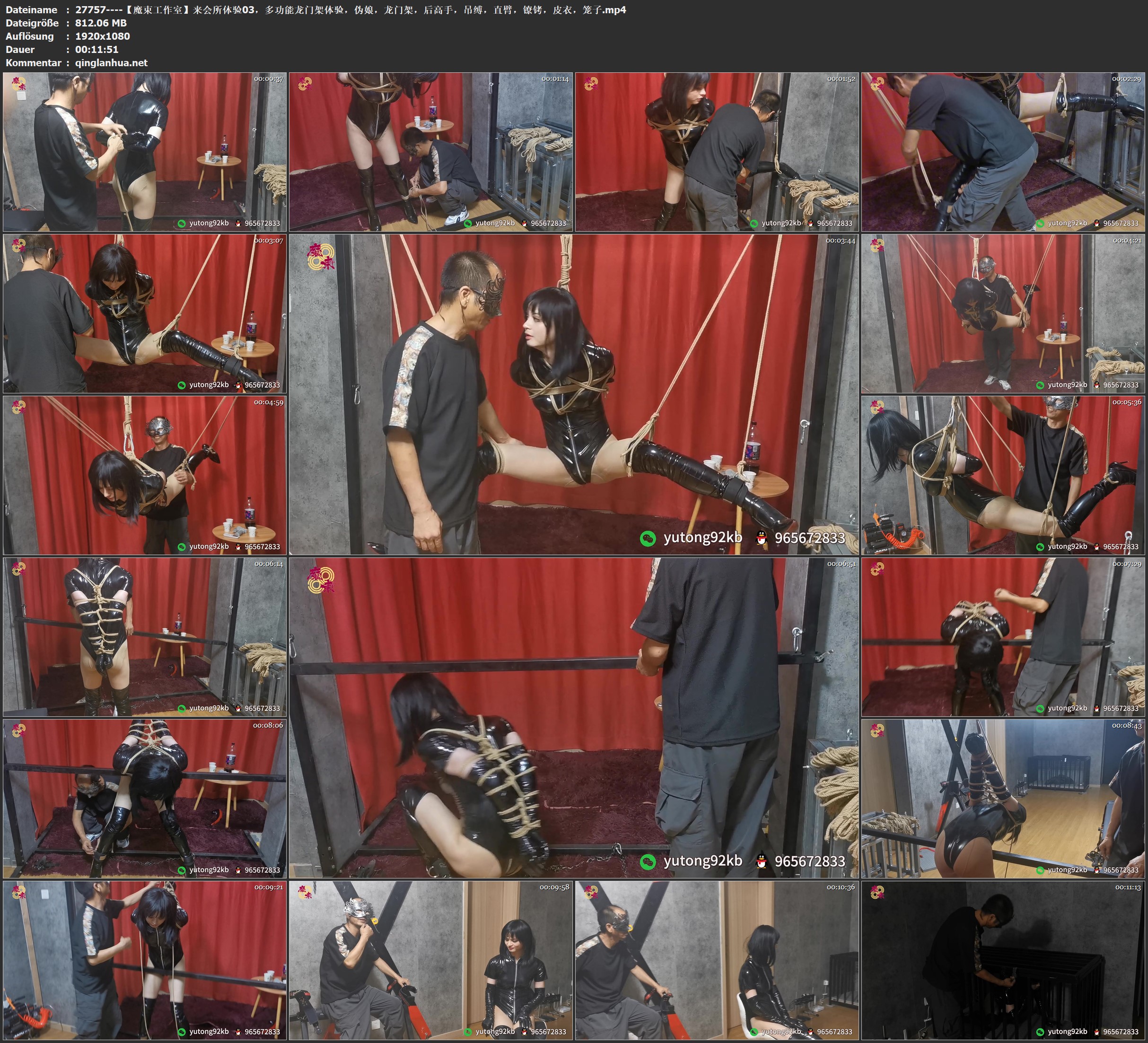 【魔束工作室】来会所体验03,多功能龙门架体验,伪娘,龙门架,后高手,吊缚,直臂,镣铐,皮衣,笼子