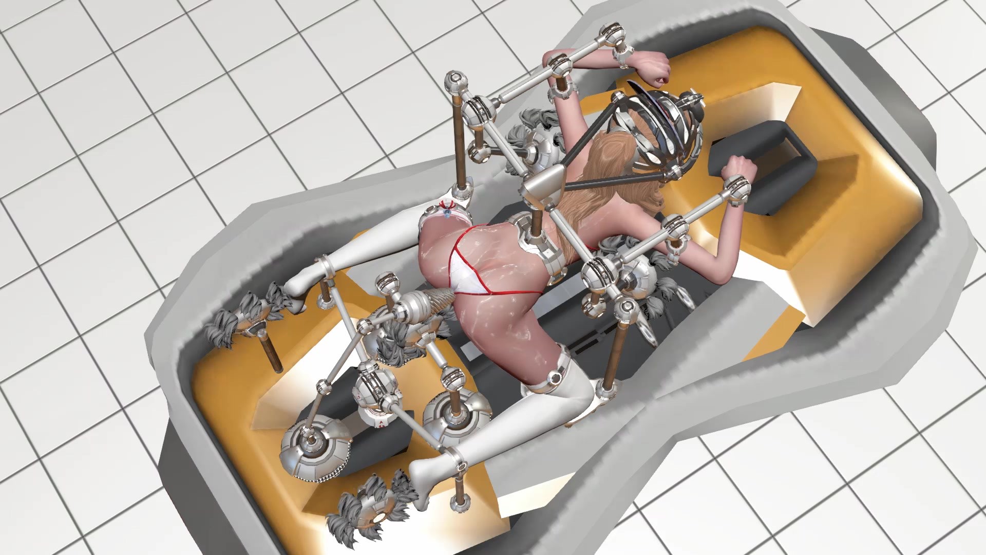 【3D动画】全身透视丝袜死库水泳衣少女 机械调教 瘙痒 口器 挠痒 ZDB 口球 强制站立 吊缚 白眼