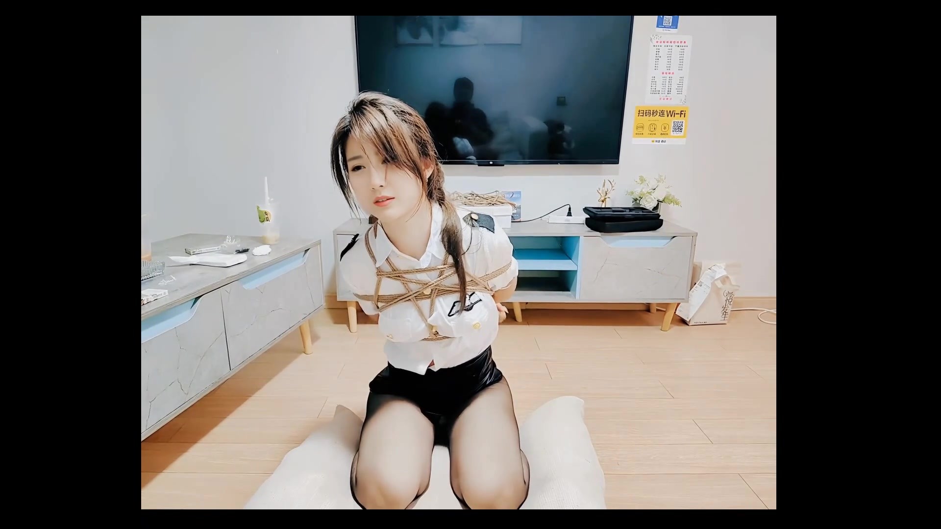 【玩绳的孩子】知性美眼镜教师姐姐衬衫OL装黑短裙捆绑(二)
