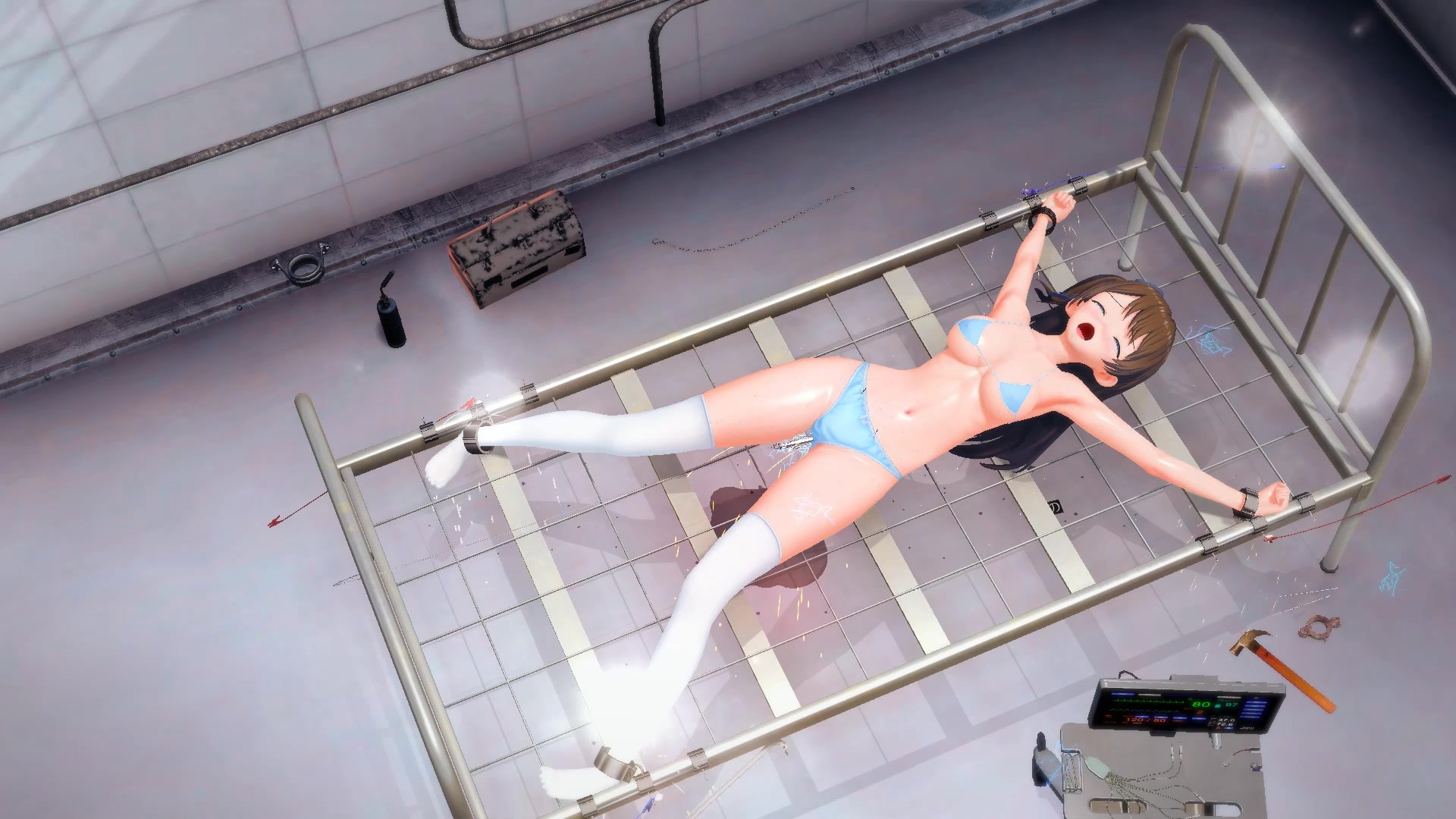 【3D动画】地下室里的少女 老虎凳 铁链 蜡烛 电击 大字 固定 强高 挣扎