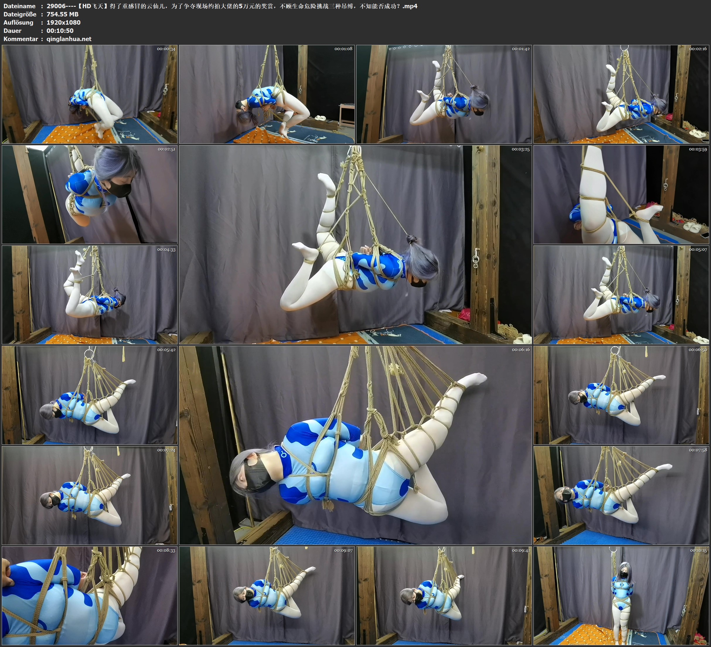 【HD飞天】得了重感冒的云仙儿,为了争夺现场约拍大佬的5万元的奖赏,不顾生命危险挑战三种吊缚,不知能否成功?