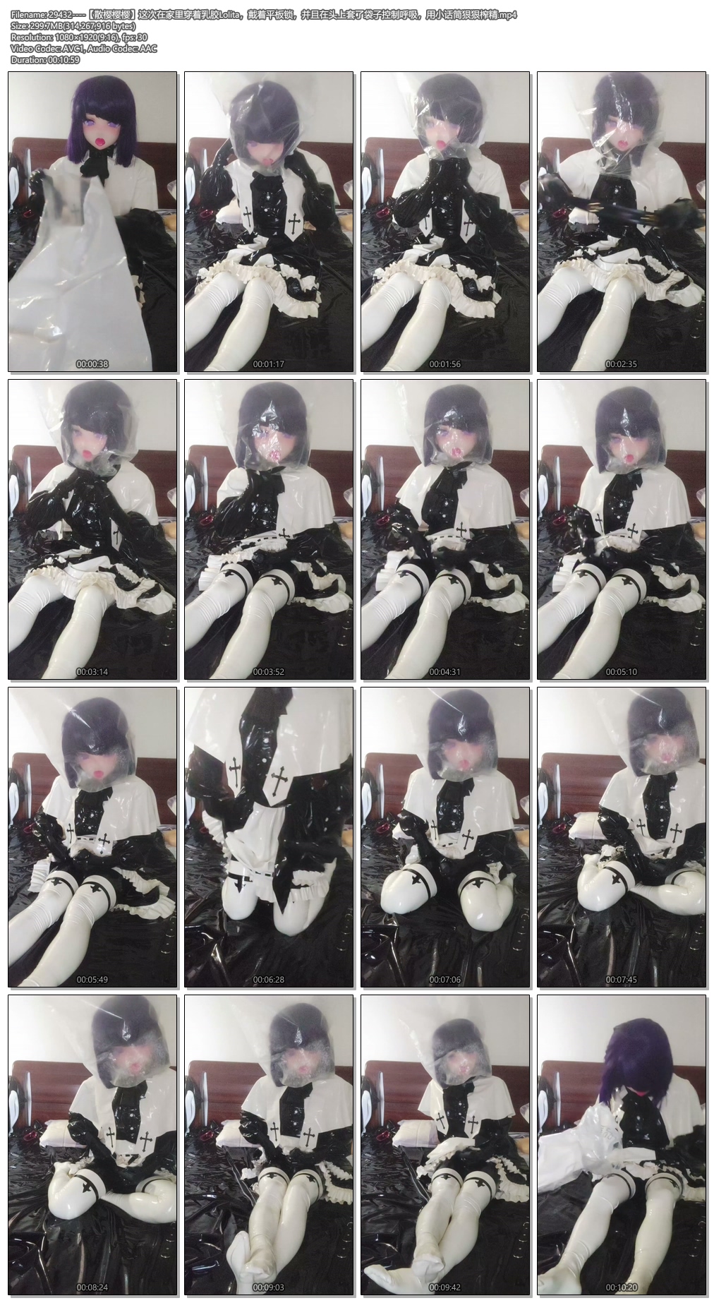 【散樱樱樱】这次在家里穿着乳胶Lolita,戴着平板锁,并且在头上套了袋子控制呼吸,用小话筒狠狠榨精