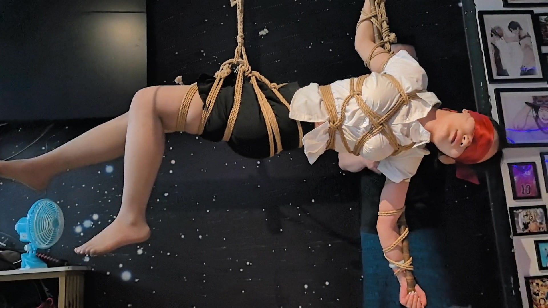 中国结竹竿缚侧吊空中转换驷马倒吊绑发
