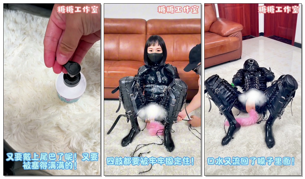 【糖糖工作室】乳胶填充物训练,拘束座椅,双伪百合加藤惠调教,遛狗,K9,假JJ、AV棒、闷晕、全包头套,绝望羊糕,还要被强行榨取