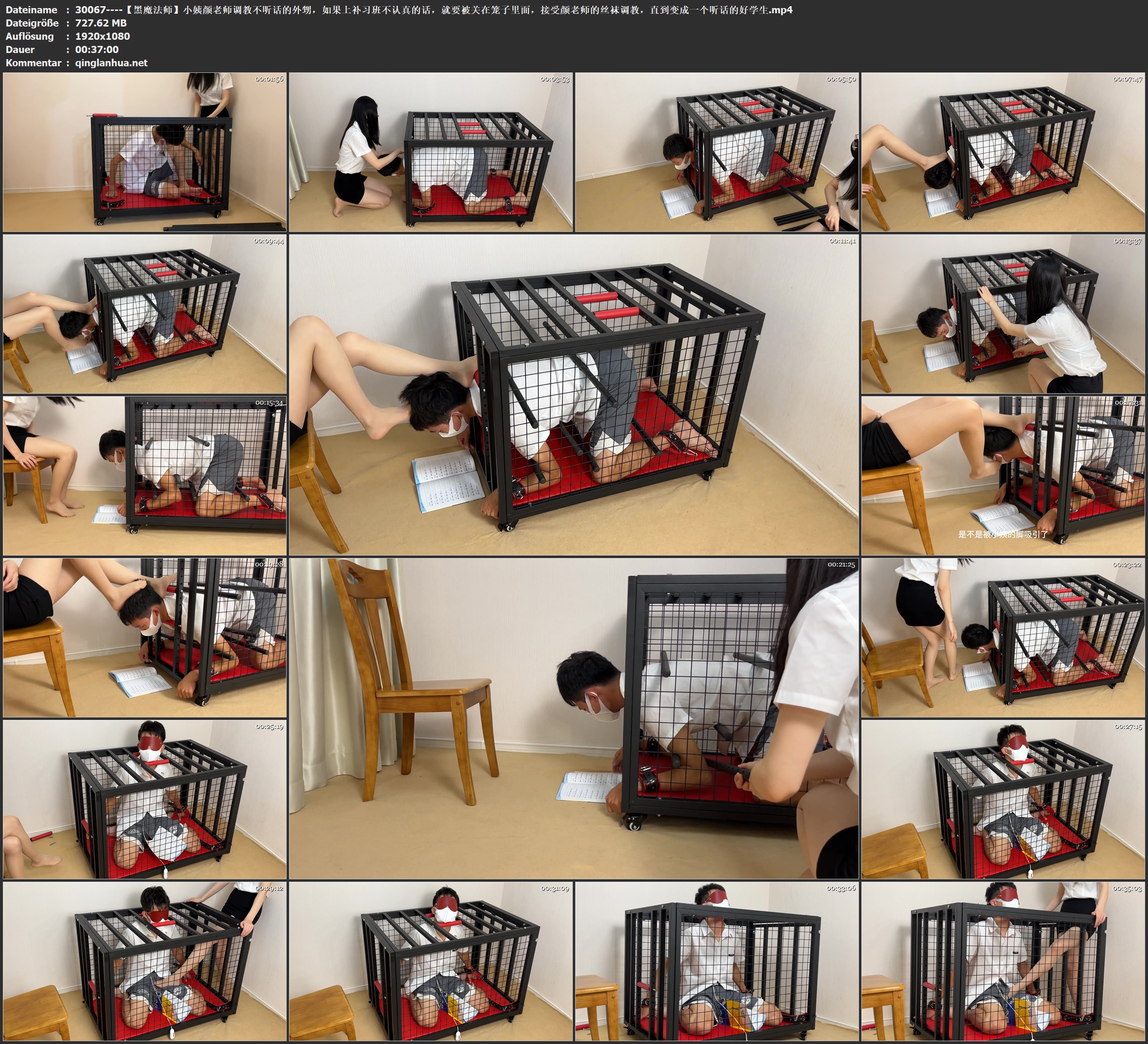 这一天颜老师抓住了自己的外甥在补习班上课不认真,受到了老师的批评,于是颜老师决定给自己调皮捣蛋的外甥一点教训,把他关进笼子里面进行调教!“天天就知道打游戏,必须得给你关起来。”颜老师把外甥关进了提前准备的笼子里面进行调教,外甥被颜老师固定在笼子里面,被颜老师穿着肉色丝袜的脚踩着脸进行蹂躏,还要进行言语上的羞辱,“我最会管的就是你这样的学生。”颜老师还警告外甥,如果不能学好这些内容就别想从笼子里面出来,一边说还不忘记用自己的脚去踩踏外甥的脸。