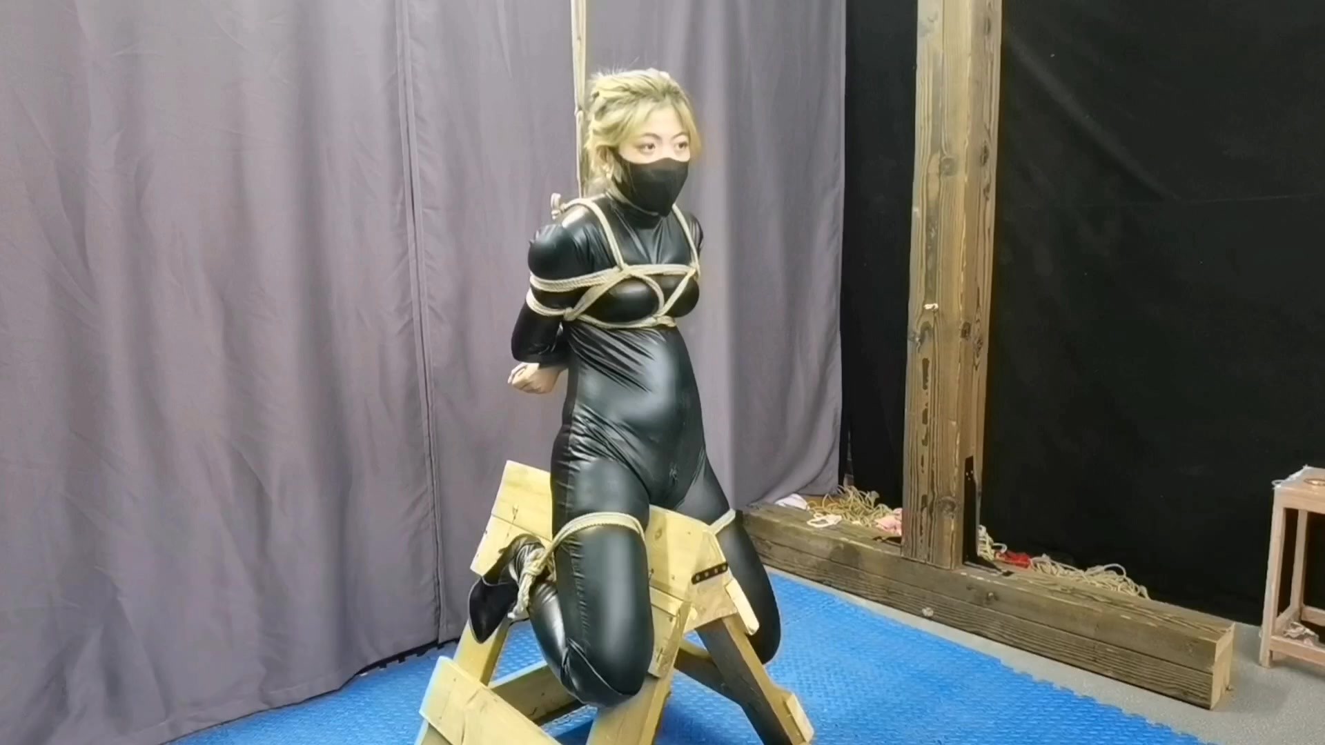 搜查官按上司指示去执任务,刚到现场,被尾随的蒙面人拿起地上的砖头把搜查官砸晕过去,她醒来后被吊在木马上,蒙面人问她怎么知道这个地点,她死不承认,蒙面人说如果不承认,你只能在这上面永远地呆着,用绳子把她的嘴捆上,说完就关门走了,搜查官被禁锢在木马上,Y部疼痛难忍,求生欲望强烈,把嘴里的绳子咬断,慢慢地解开身上绳子准备逃走,被回来的蒙面人发现,在重新驷马绑起来,用铁链把嘴绑起来,蒙面人把灯拉灭,起来走人,随边挣扎去吧