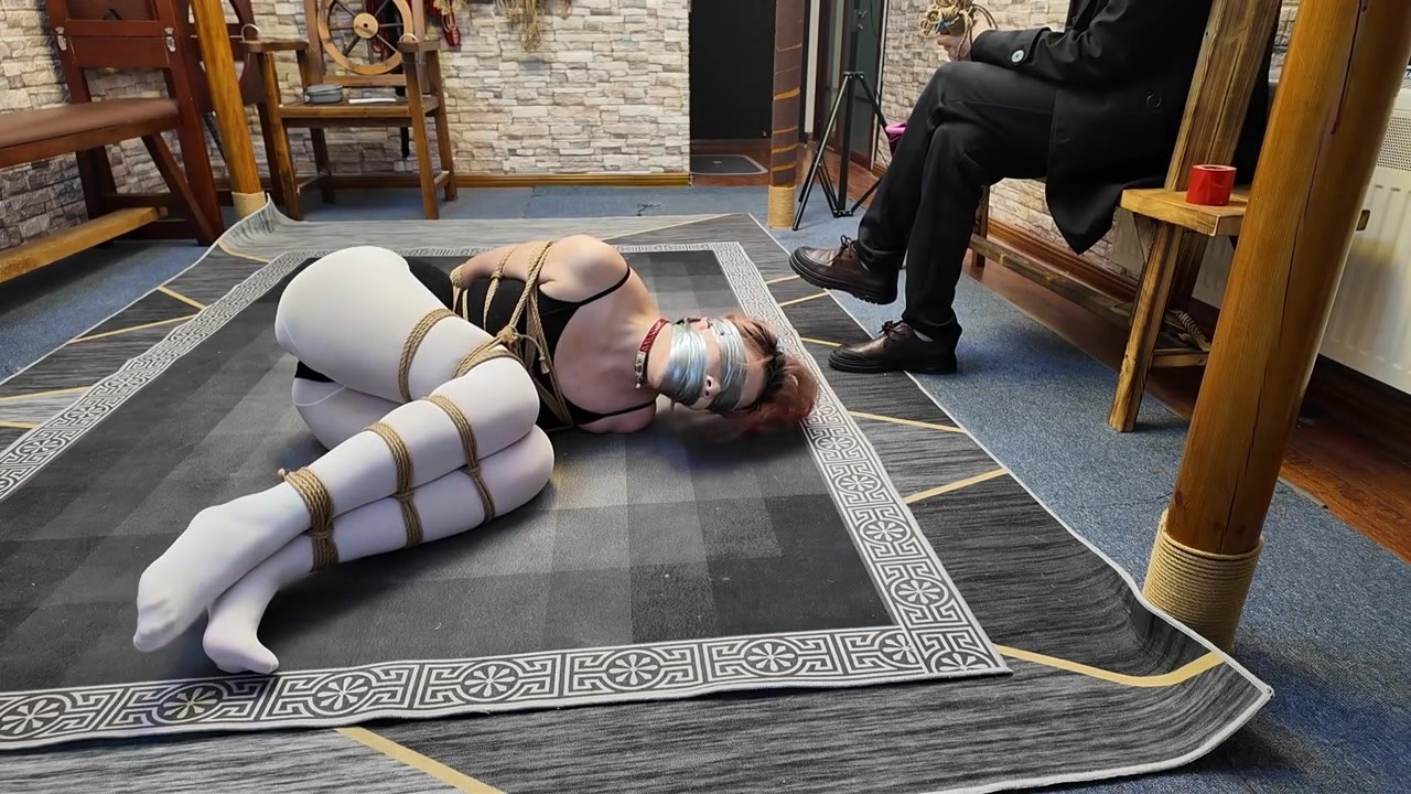 陈依依是舞蹈团的首席舞者,这天她在自己做着拉伸运动,突然被一个歹徒劫走。歹徒将她囚禁到一间密室,用绳子和铁链紧紧的捆绑她,又用胶带堵嘴蒙眼。因为陈依依不断挣扎求救,歹徒干脆用胶带贴住她的鼻子,又把她绑到柱子上,让她消停一下。一段时间后,歹徒又把她绑成了驷马。陈依依呜呜求饶,歹徒却不想放过她,最终又用胶条贴住她的鼻子,任由她挣扎