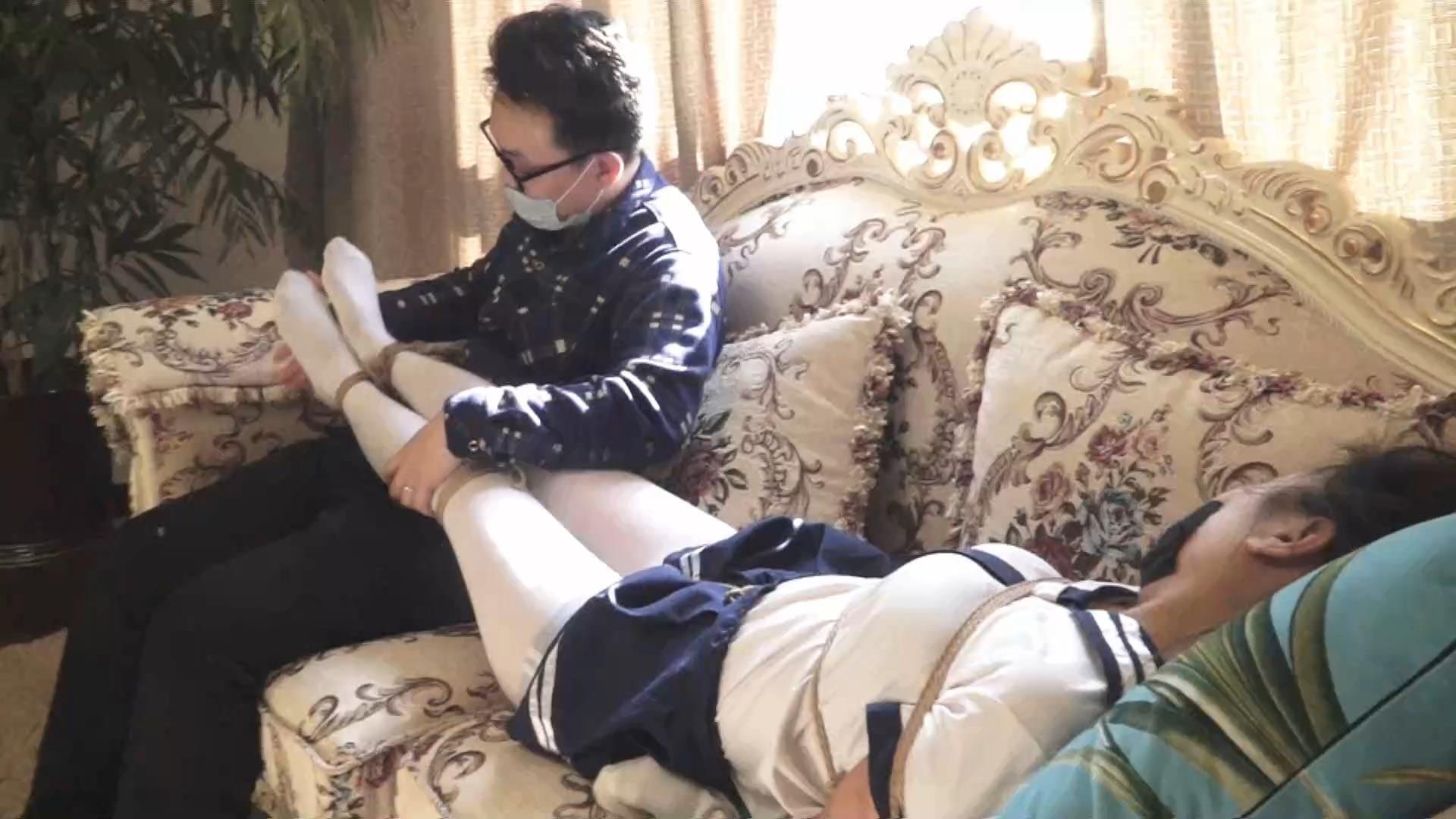 水手服美女被突然抓住,拖进了房间,美女被男人拖鞋厚棉袜套在手上,丝袜塞嘴多层胶带交错封死。白丝美女被捆绑囚禁玩弄娇躯,挠痒丝袜美脚,逃跑被发现有被长筒袜把手脚都套上,多层包裹捆绑让美女完全没有逃走的机会