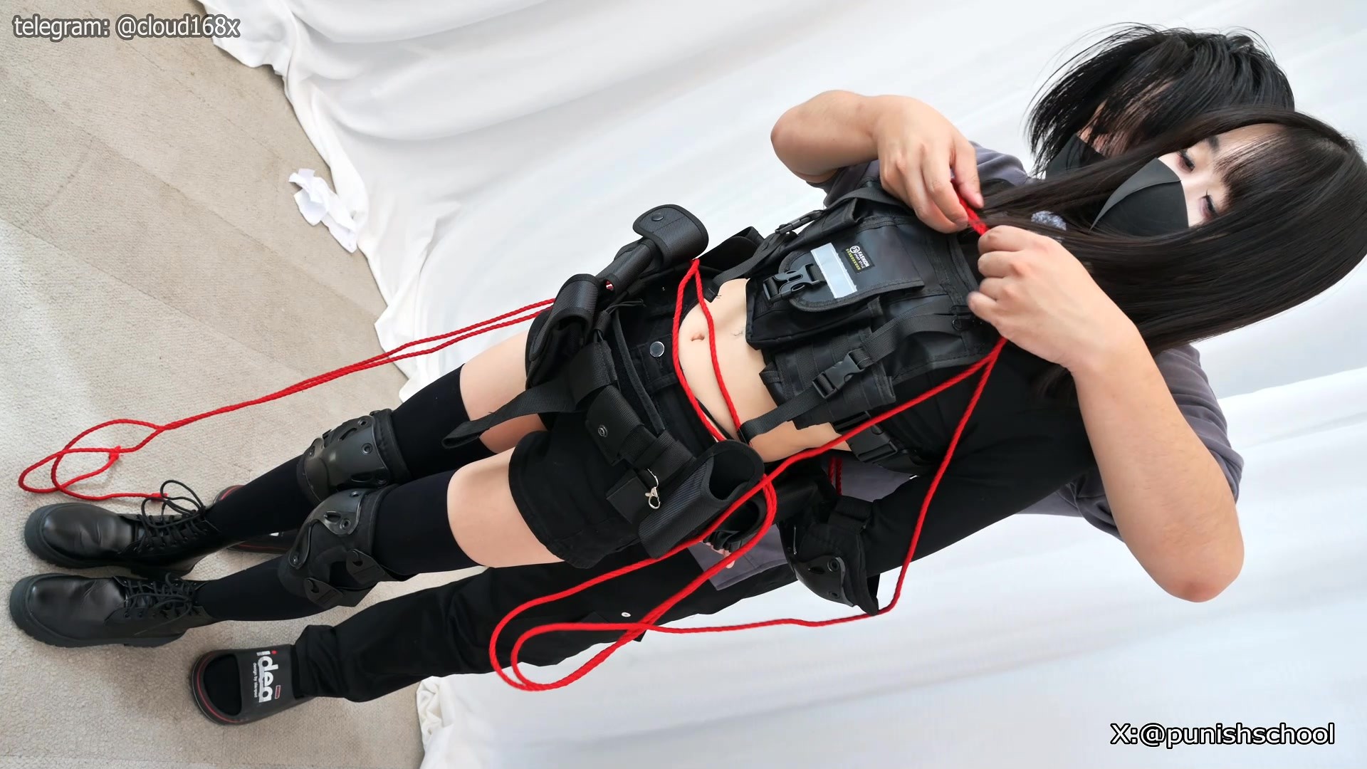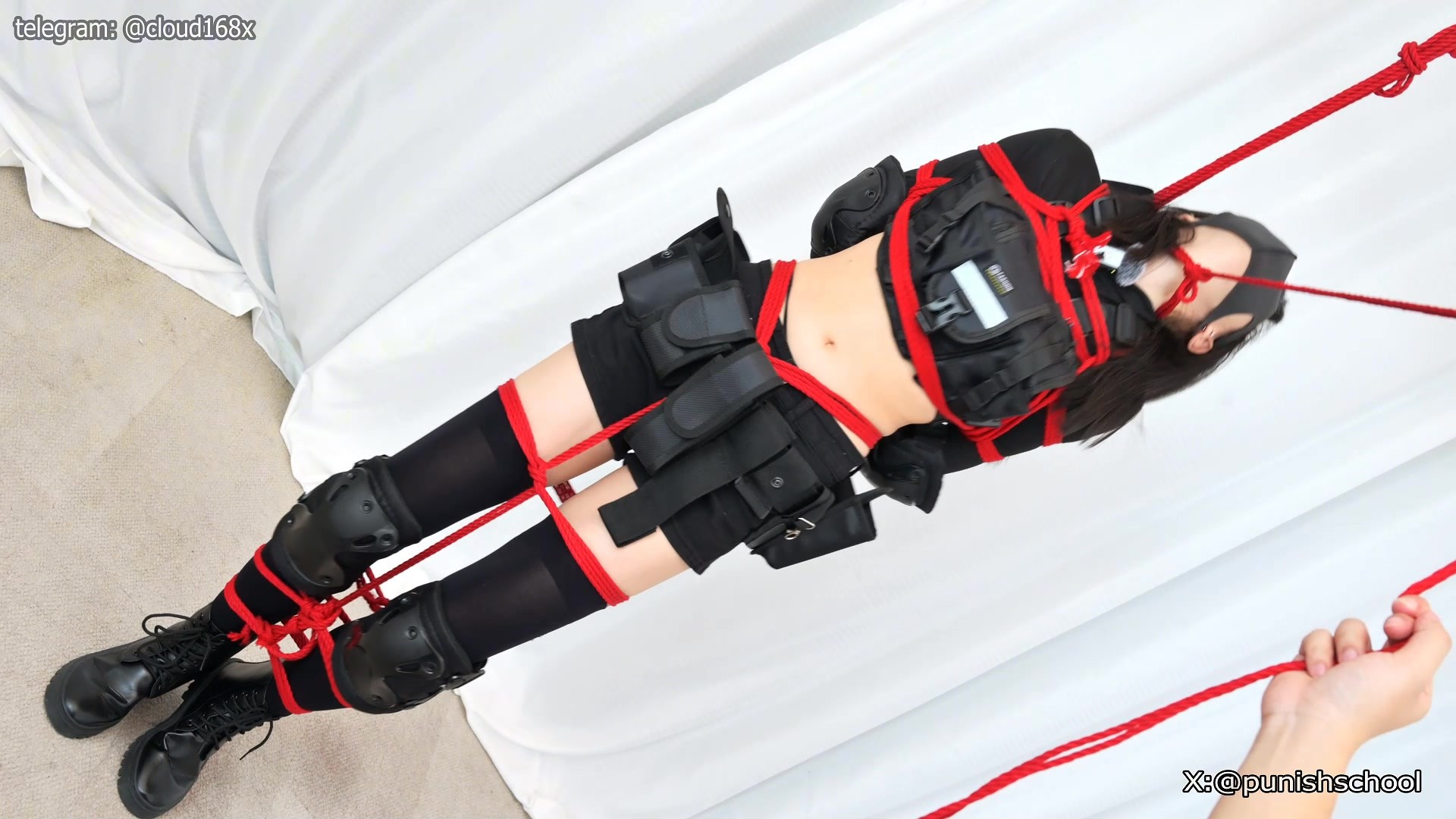 我们俘虏了黑丝绝对领域的武装小姐姐 致命的拷问即将开始 检查她的大雷 抚摸她光滑的小腹 然后玩弄她外露的内裤 再用棒棒震动她的全身,例行调教先挑逗她敏感的身体,然后就是给她套上致命的绞索,为了生存 她不得不身长她笔直的美腿,然后继续用棒棒帮助她回忆下该有的机密 挑战工作室史上最长绞刑调教