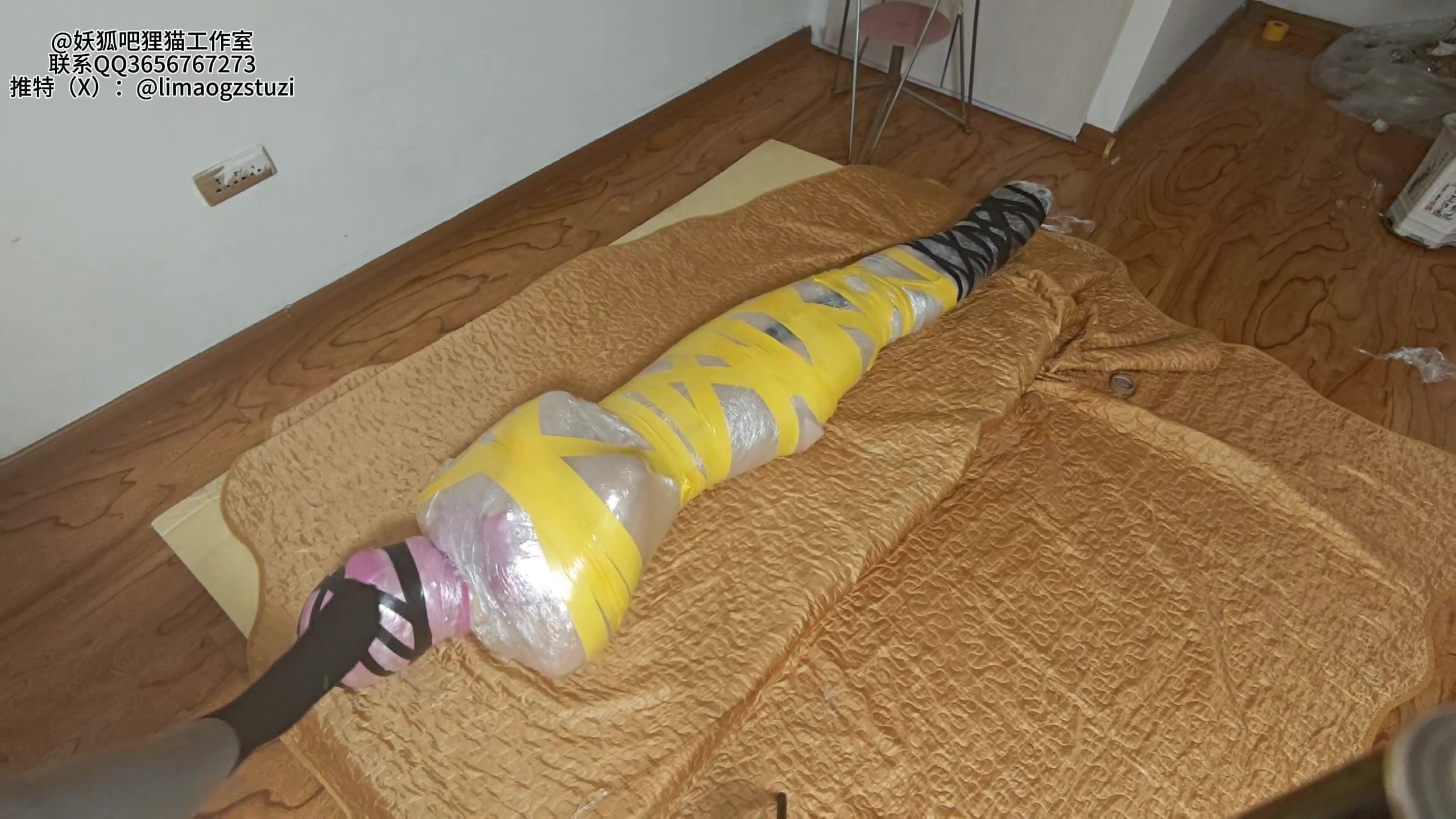 【狸猫工作室】女M人形犬木乃伊,胶带全包摆件放置,kigurumi,抑制呼吸,郊狼电电!(下)