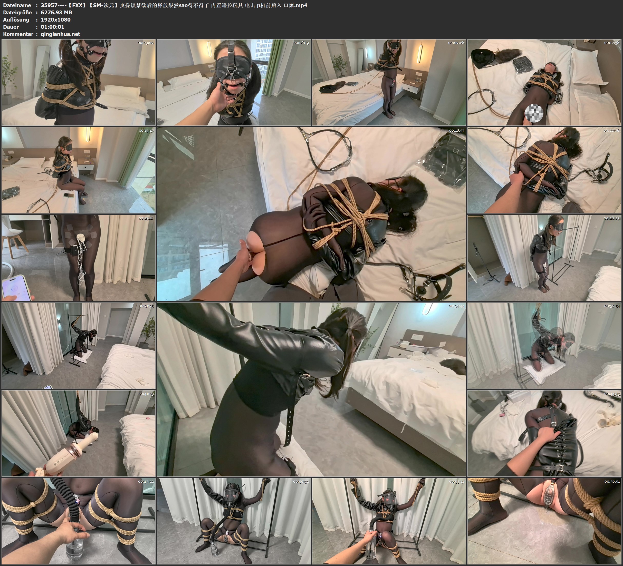【FXX】【小sao兔】连体油光黑丝+大字缚 震动强高+电击+SP ZW+驷马+口暴含精+贞操锁+内置TD+电击+蟹缚+乳胶头套ZX