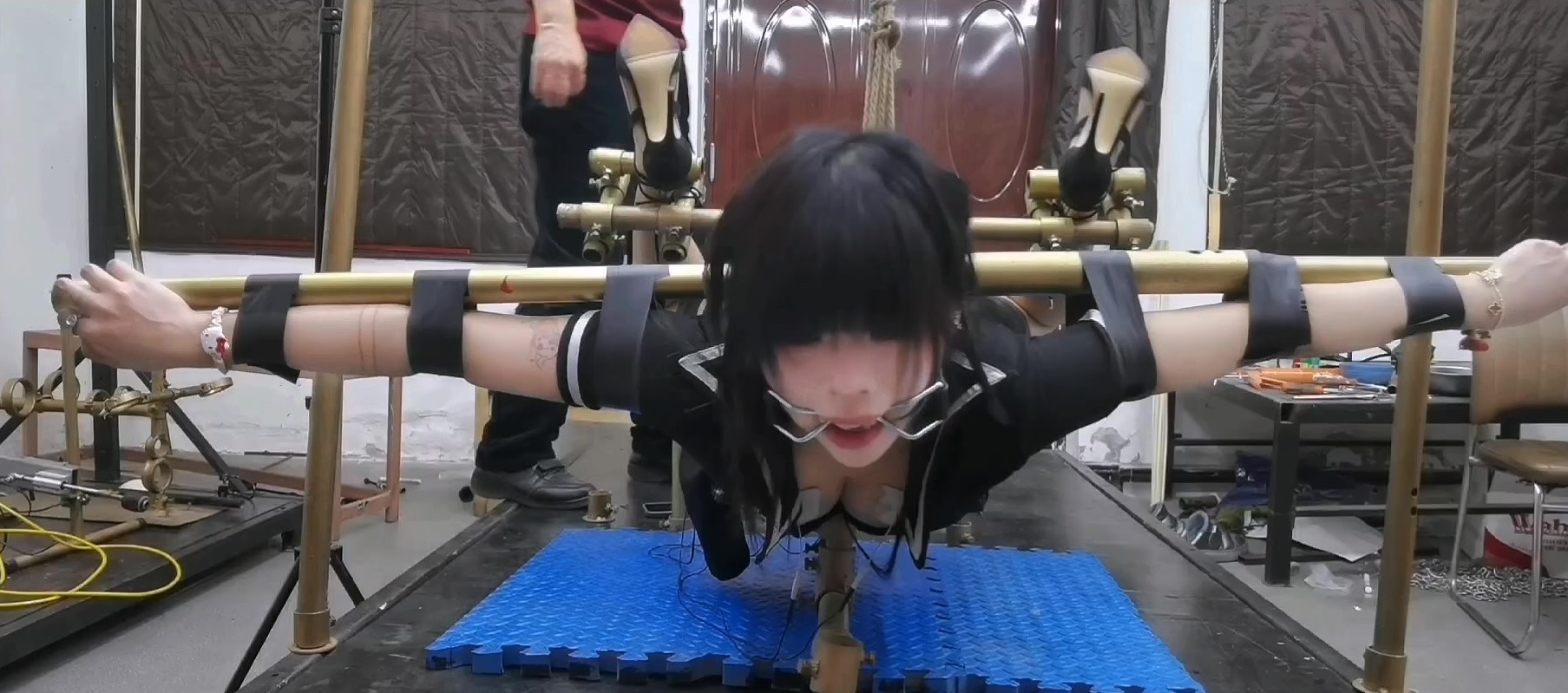【缚心室】80多斤女学生的拘束架折磨小合集,啵啵贝VS炮机,两种