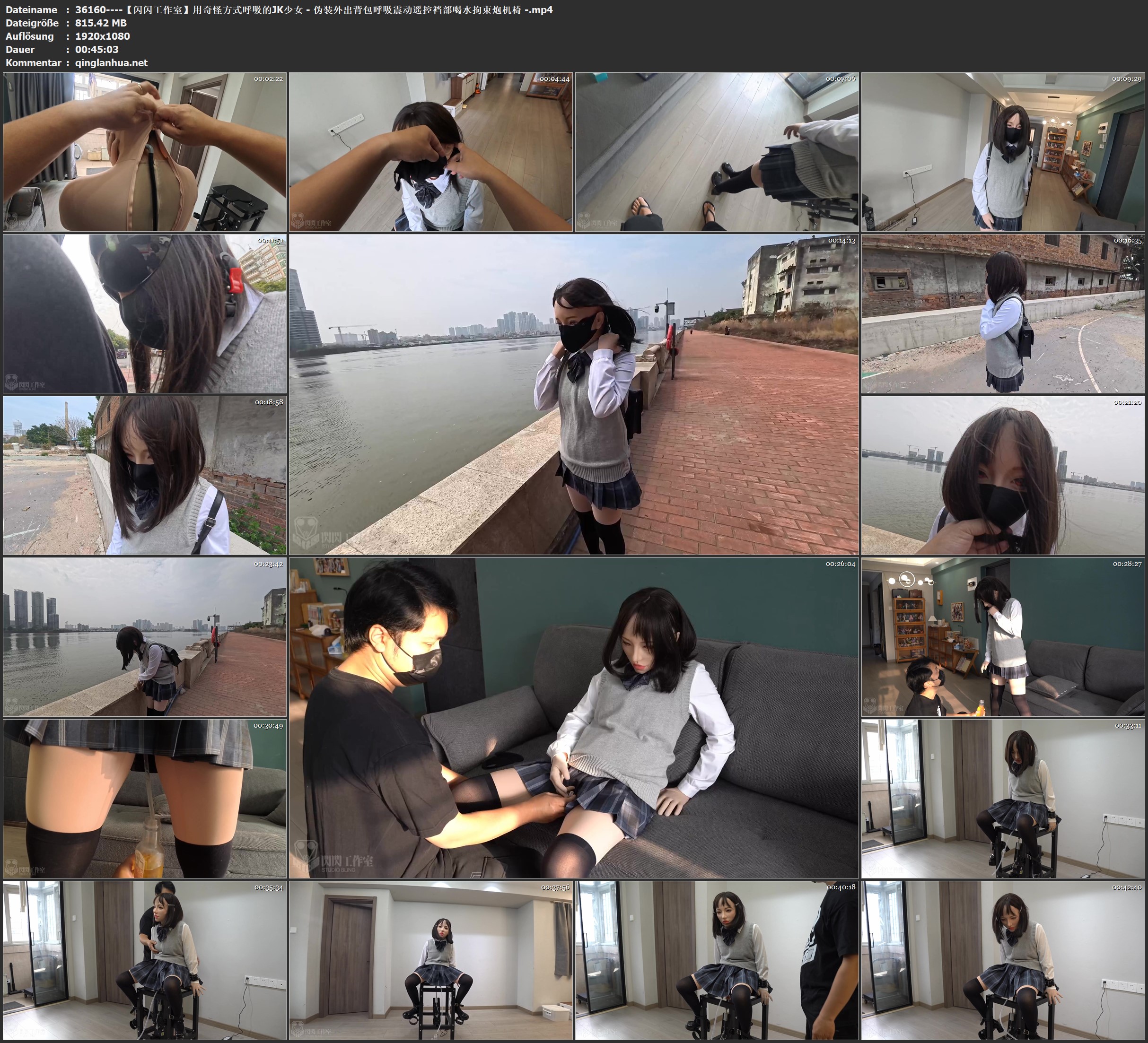【闪闪工作室】用奇怪方式呼吸的JK少女 - 伪装外出/背包呼吸/震动遥控/裆部喝水/拘束炮机椅 -