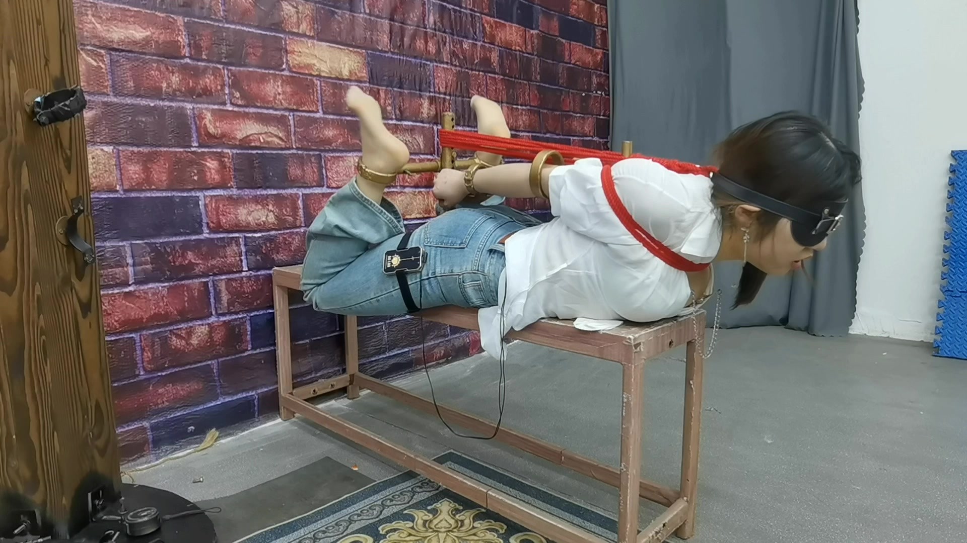【缚心室】80多斤女学生的拘束架折磨小合集,啵啵贝VS炮机,两种