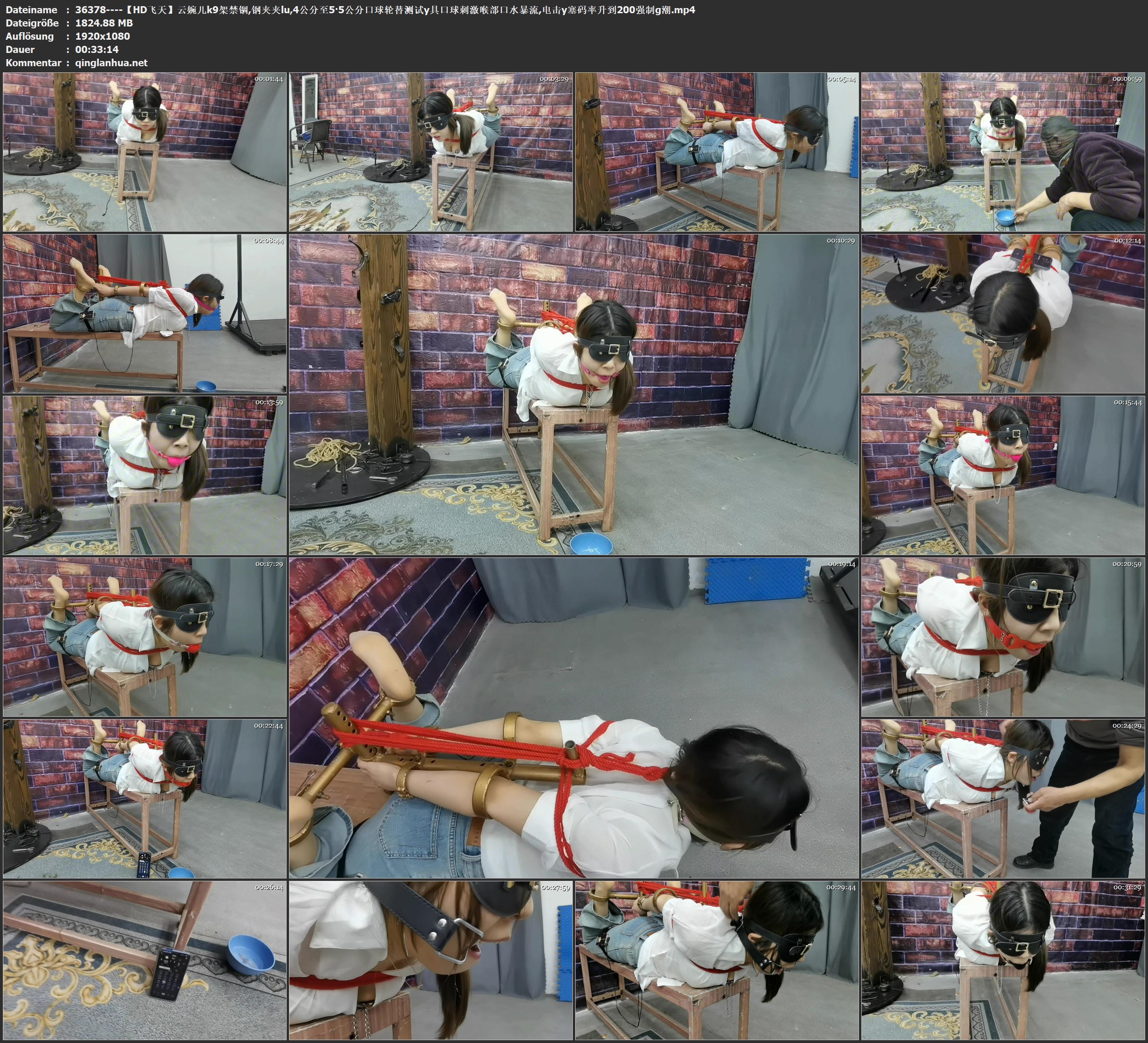 【HD飞天】云婉儿k9架禁锢,钢夹夹lu,4公分至5·5公分口球轮替测试y具口球刺激喉部口水暴流,电击y塞码率升到200强制g潮