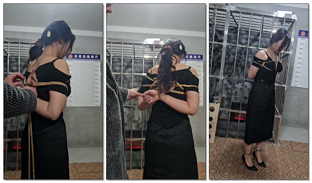 【皖北绳艺】某手几十万粉丝网红、白衬衫、高马尾、红底高跟。为艺术献身,铁笼里被囚、哭的梨花带雨!!!