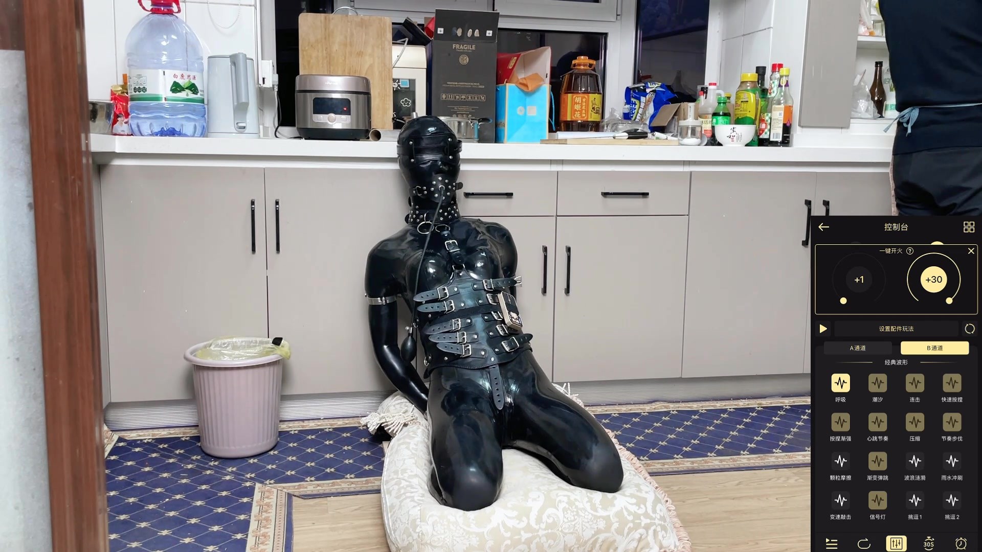 突然电流开启,身体一颤,娇羞耻辱的感觉便填充满大脑,口塞突然被充气,眼睛看不到外面的光线,[X_X]也工作起来!