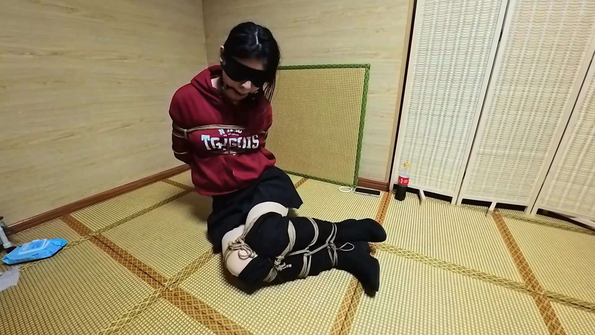 【川川】红色卫衣后手并腿缚 放置挣扎