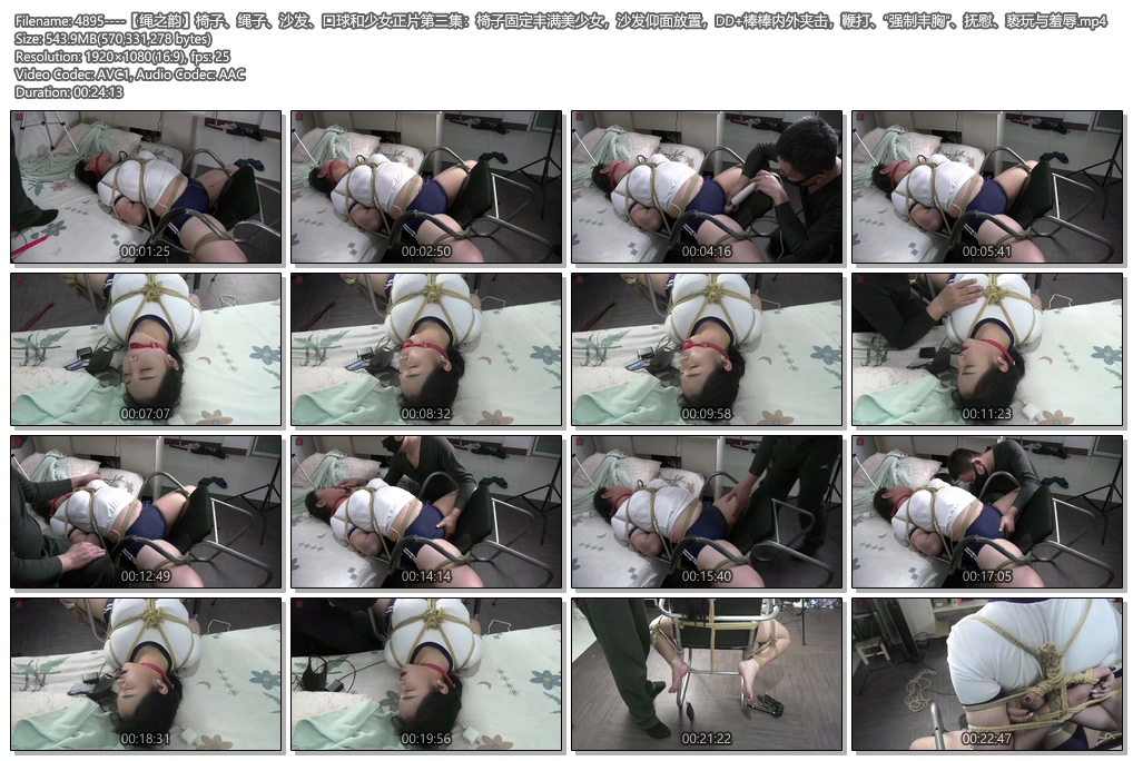【绳之韵】椅子、绳子、沙发、口球和少女正片第三集:椅子固定丰满美少女,沙发仰面放置,DD+棒棒内外夹击,鞭打、“强制丰胸”、抚慰、亵玩与羞辱