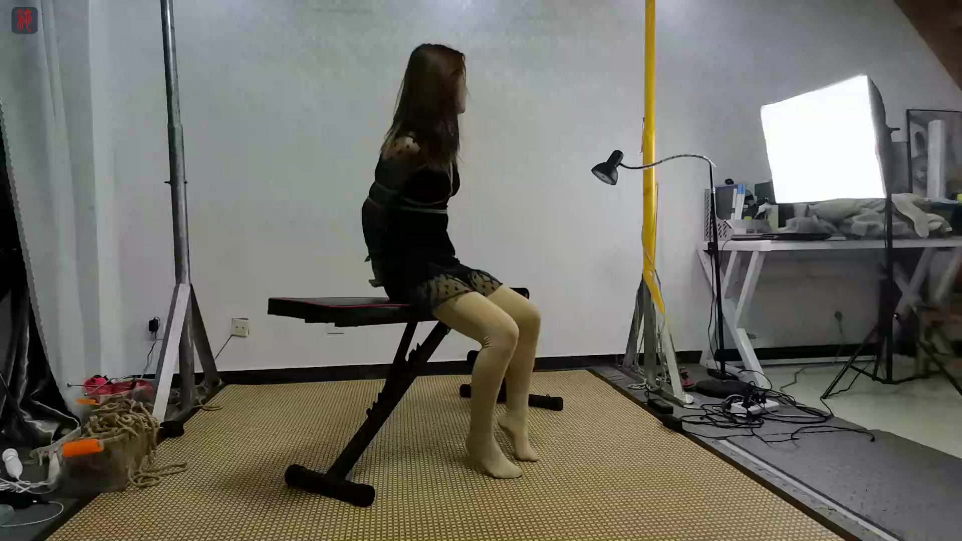 【绳之韵】小九妹,蕾丝黑裙第一集:驷马凳子禁锢,股绳固定棒棒,藤条虐足、抽脚心,亵玩小PP、SP,绳奴培育进行时。