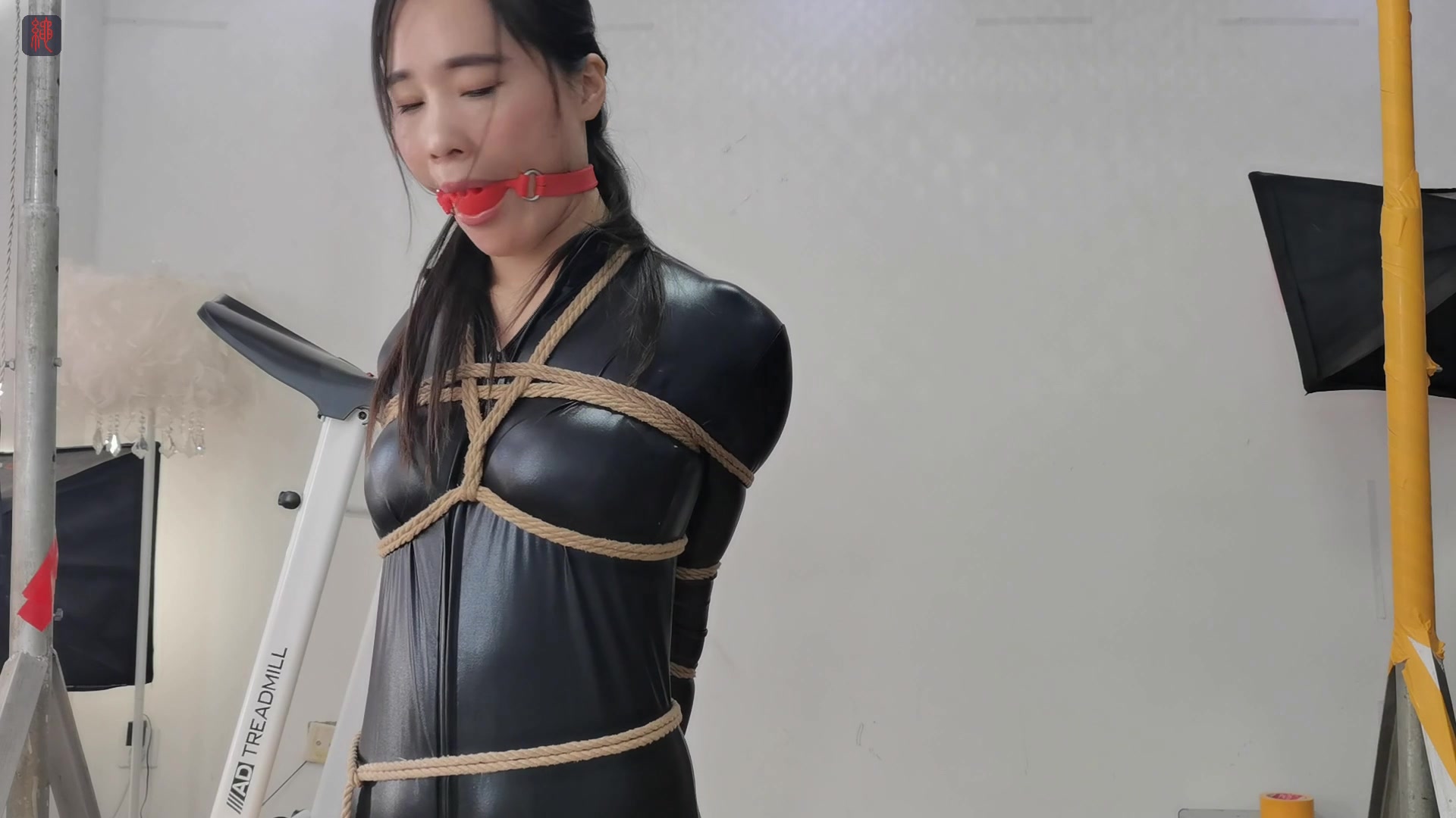 菲菲,绳模的科学建设方式第三拍第三集,黑胶衣直臂捆绑,口球口水,股绳固定棒极限运动,高跟虐足、羞辱亵玩