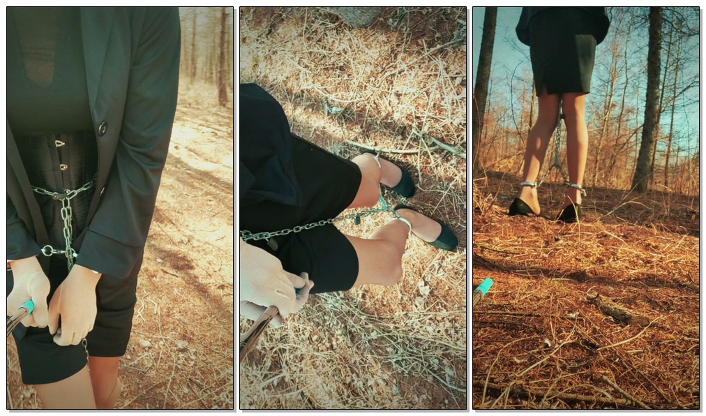 今天没事情去野外溜达,灵机一动在野外玩起了自缚,穿着职业裙和高跟鞋,用锁链把自己束缚住,把钥匙都放在车里,一种奇妙的感觉在心里,里面穿着连体丝袜,我觉得这样的我很性感。