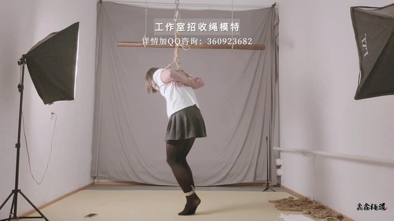 【缚心室】真空上阵,油光灰丝小美女直臂紧缚折磨,吊缚+驷马一