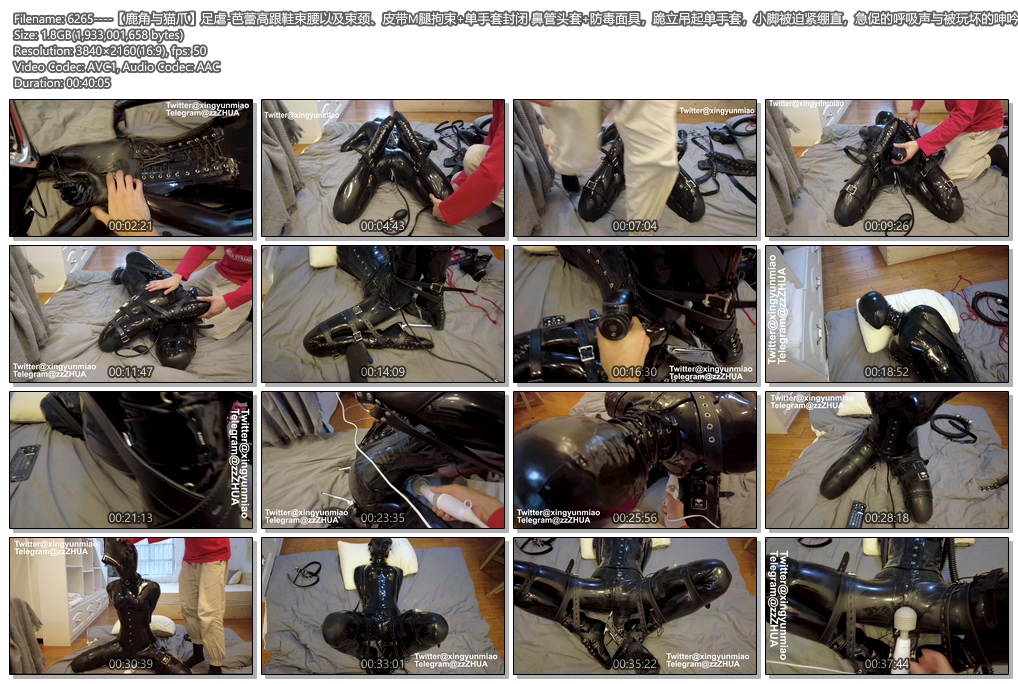 入了新玩具(刑具)迫不及待给爪爪使用上,穿上乳胶衣,佩戴好带鼻管的头套,勒紧束腰和束颈,穿上芭蕾高跟鞋。身体每一处都被玩具紧绷,等待主人玩弄。脚被鞋子绷直,M腿拘束+直臂,束腰收缩肚子,束颈包裹脖子无法低头。抚摸鞭打,电击开启,听到的是爪爪兴奋呻吟中伴随急促的呼吸声。震动强制刺激,戴上面具爪爪变得更加兴奋敏感,挣扎、呻吟、努力呼吸中进入GC.....