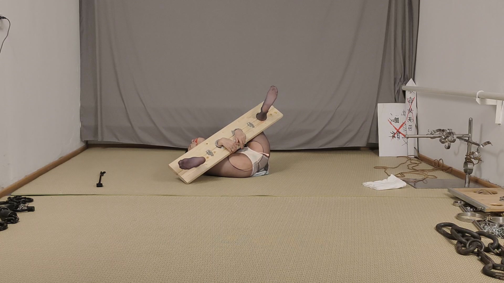 【鑫鑫工作室】小肉臀木枷体验第二部,带着口球被鞭打