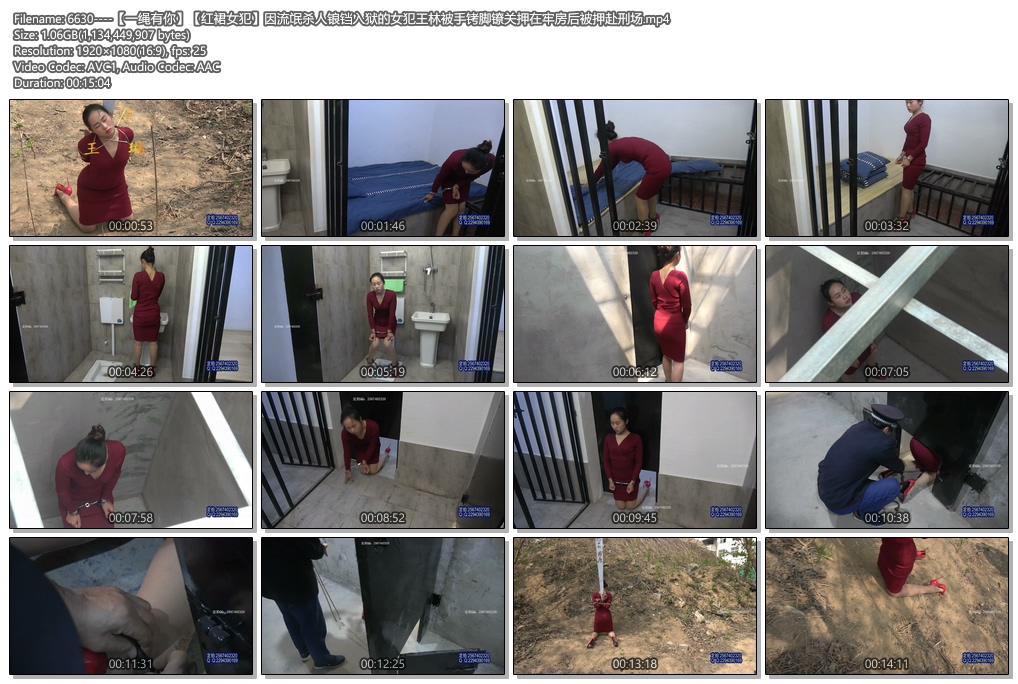 【一绳有你】【红裙女犯】因流氓杀人锒铛入狱的女犯王林被手铐脚镣关押在牢房后被押赴刑场