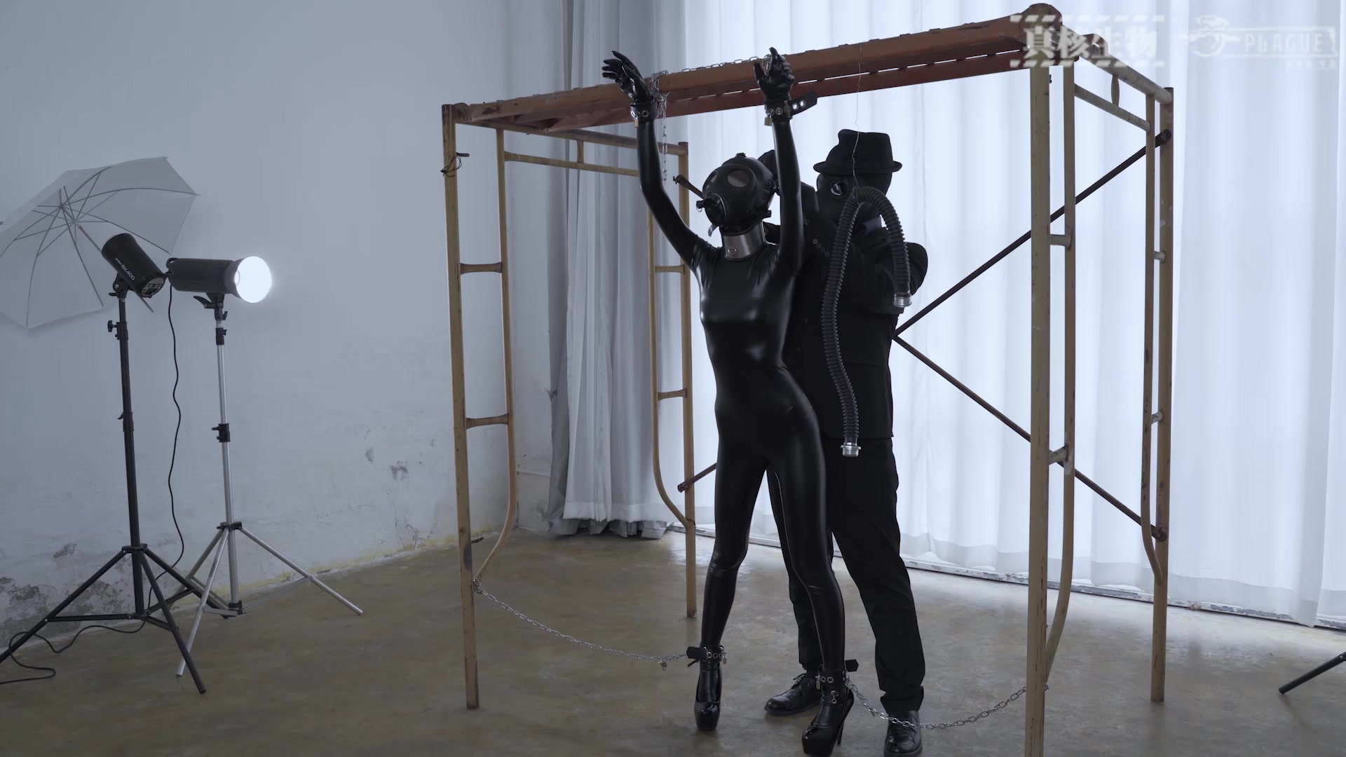 【真核生物】真核生物-第五部- 新来的可爱妹子,手被吊在架子,黑色的涂胶身体,防毒面具,漆皮高跟,铁链手铐