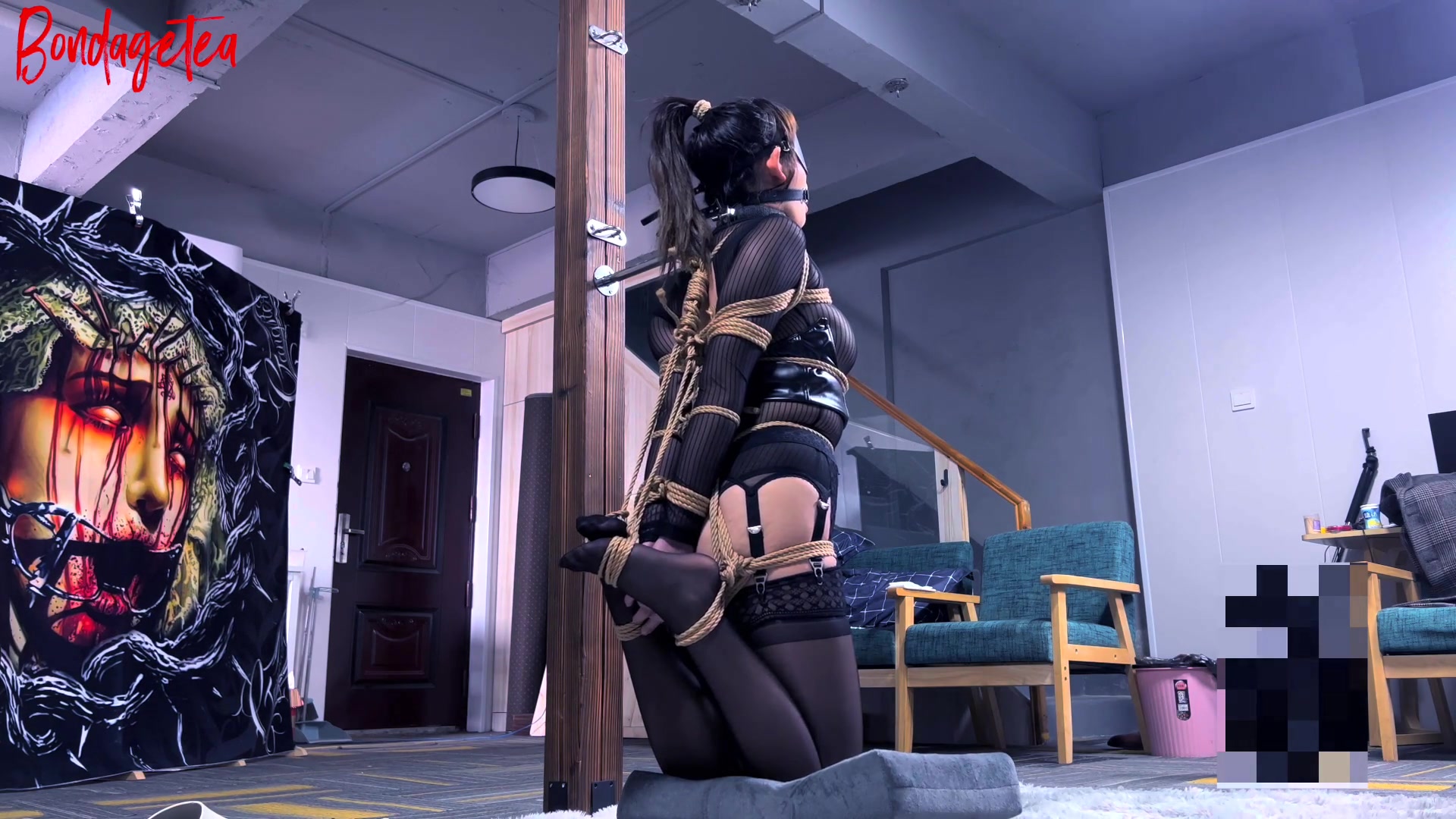 【绳精病】丝袜全包紧缚的女孩被困在玩具上无法自拔