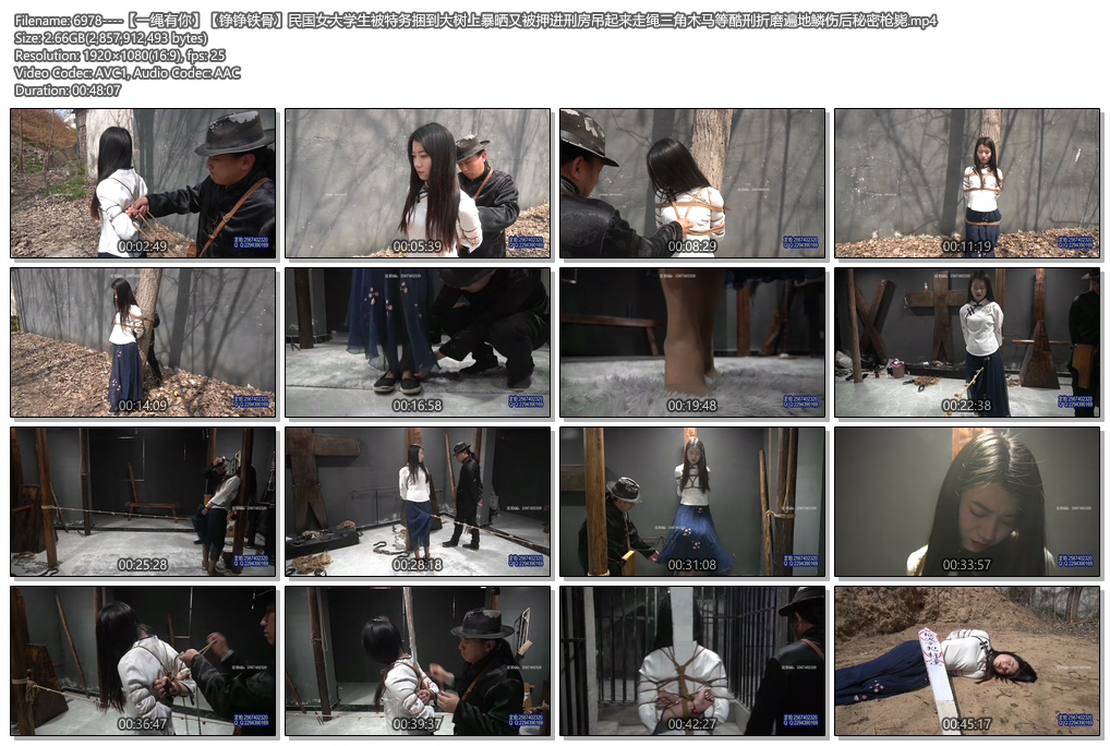 【一绳有你】【铮铮铁骨】民国女大学生被特务捆到大树上暴晒又被押进刑房吊起来走绳三角木马等酷刑折磨遍地鳞伤后秘密枪毙