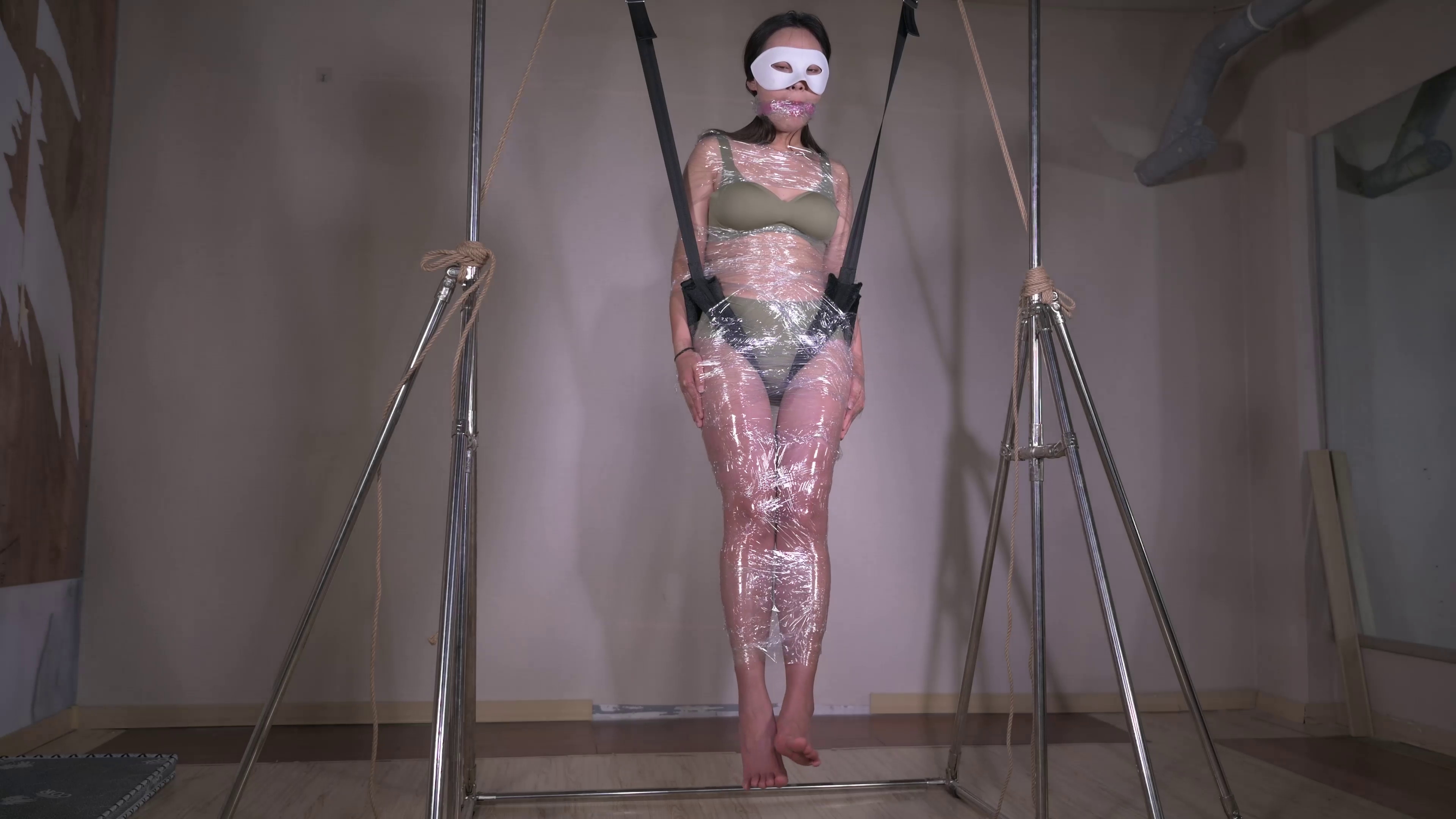 一直想尝试一下木乃伊包裹后把绳模悬吊起来,一时间也没有找到参照,本来想用四个吊点,后来还是抱着试一试的态度只用大腿根部两点来吊,没想到竟然得到出其不意的效果,绳模不但能保持住平衡,还能把她放平,TK时的挣扎也能维持平衡,绳模坚持的时间也比较长,一次非常成功的尝试。