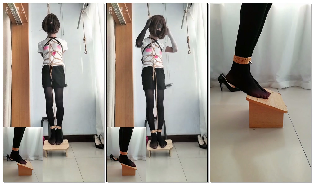 【玩家自缚】强制踮脚,光滑斜面,止不住打滑,艰难踮脚支撑。单手套自缚。
