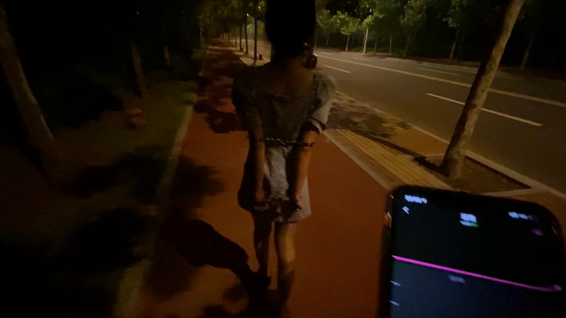 把车停在环海路上,在车内把涵涵日式捆绑,下车行走 车内捆绑大黑牛GC 镣铐行走,自己给自己铐的太紧实在走不动了,只走了一小段。把脚铐拿掉TD手机遥控控制。把涵涵双手铐在副驾驶把手上 TD控制GC发出美妙的叫声