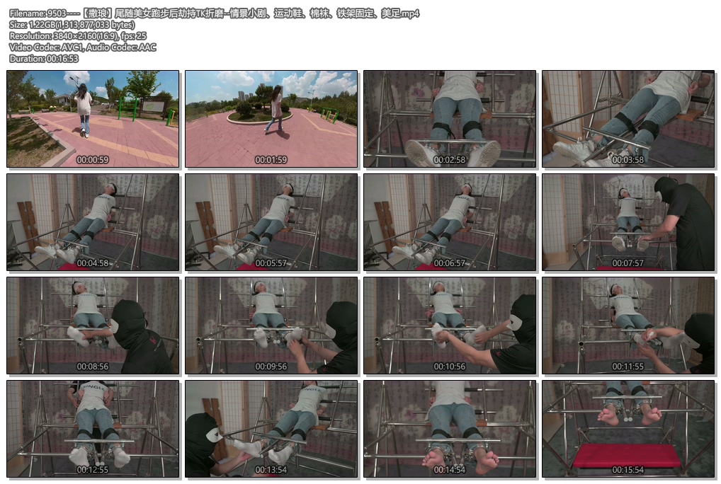 【撒琅】尾随美女跑步后劫持TK折磨--情景小剧、运动鞋、棉袜、铁架固定、美足